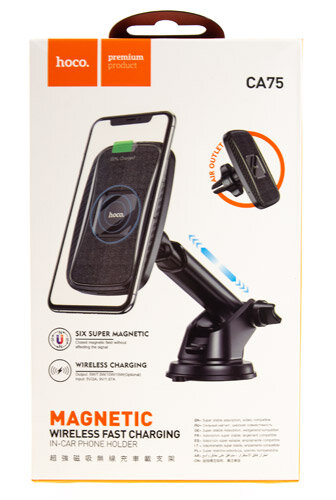 Магнитный держатель с беспроводной зарядкой Hoco CA75 Magnetic black