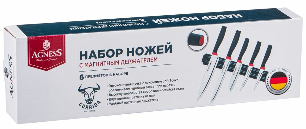 СохранитьНабор ножей agness 6 пр.с магнитным держателем и пластиковой ручкой, серия corrida KSG-911-638 интересное: