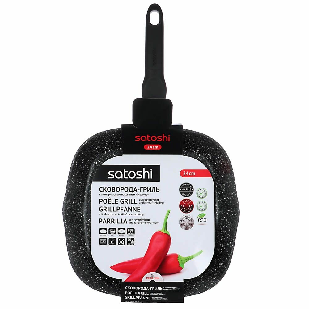 Satoshi Сковорода-гриль литой алюминий 24х24 см антипригарное каменное покрытие, индукция