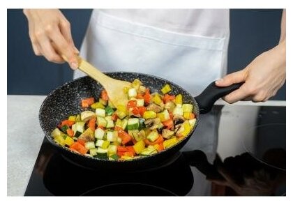 Сковорода Satoshi Стоун 28 см с антипригарным покрытием, индукция, без крышки, литой алюминий