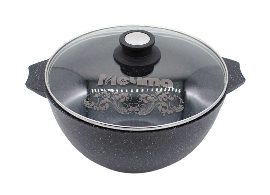 Казан для плова "Мечта" 10л Гранит с антипригарным покрытием со стеклянной крышкой, можно мыть в посудомоечной машине