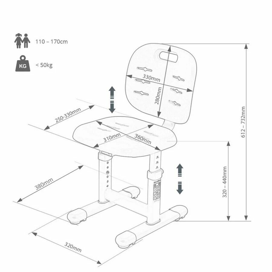 Стул ученический регулируемый "ДЭМИ" СУТ.01, 400х330-343х795-874 мм, серый каркас, фанера лак