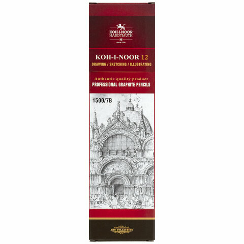 12 шт. Карандаш чернографитный KOH-I-NOOR 1500, 1 шт., 7B, корпус желтый, заточенный, 150007B01170RU