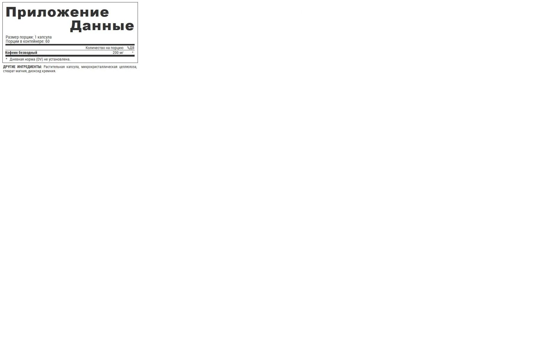 Caffeine 200, 60 капсул