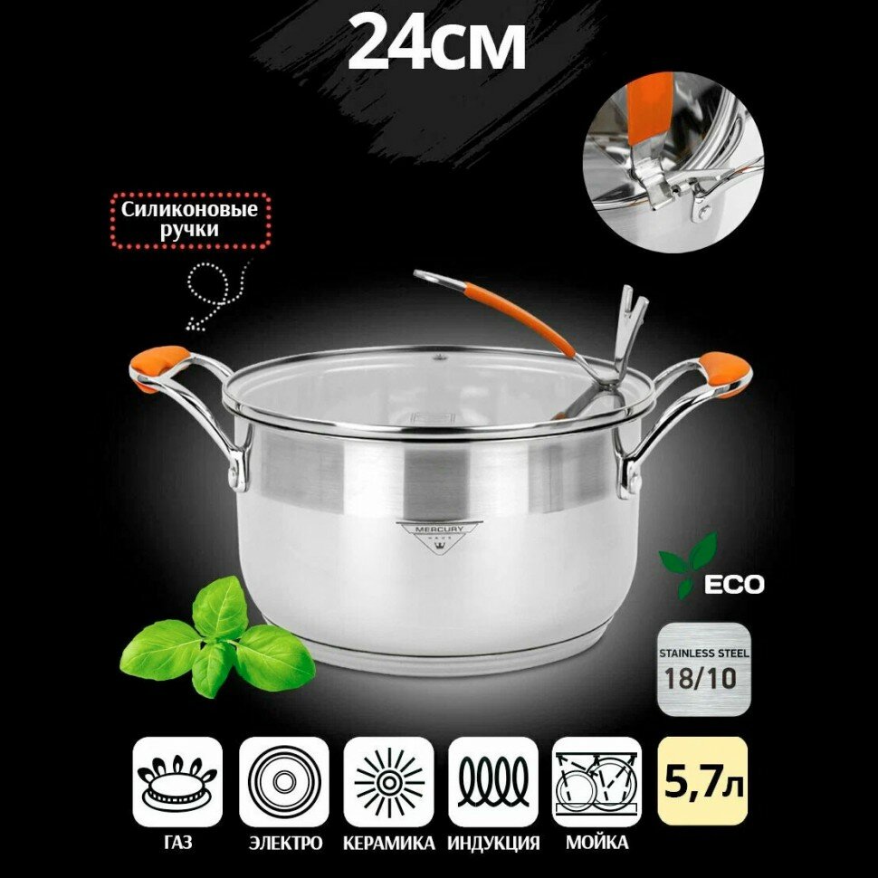 Кастрюля с крышкой "MercuryHaus", MC - 1663 Turno (6) 5,7 л 24*13,5 см (-) интересное: