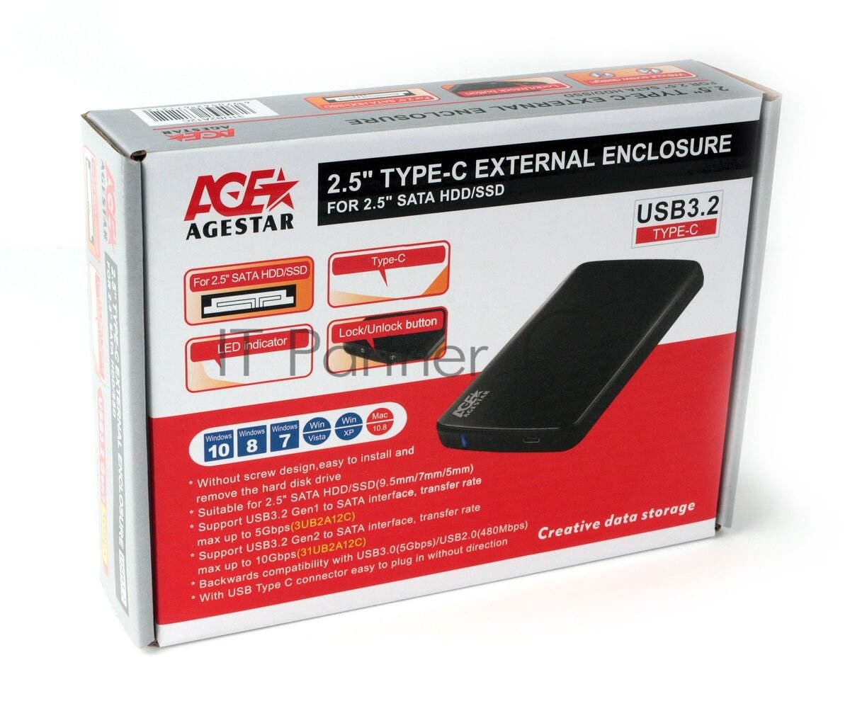 Внешний корпус для HDD 2.5" Agestar 31UB2A12C-6G алюминий, черный, USB 3.2 интересное: