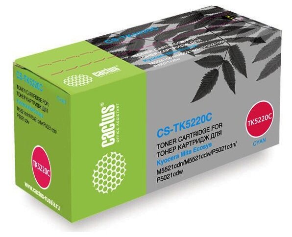 Тонер-картридж CACTUS (CS-TK5220C) для KYOCERA Ecosys P5021cdn/cdw/M5521cdn, голубой, ресурс 1200 стр