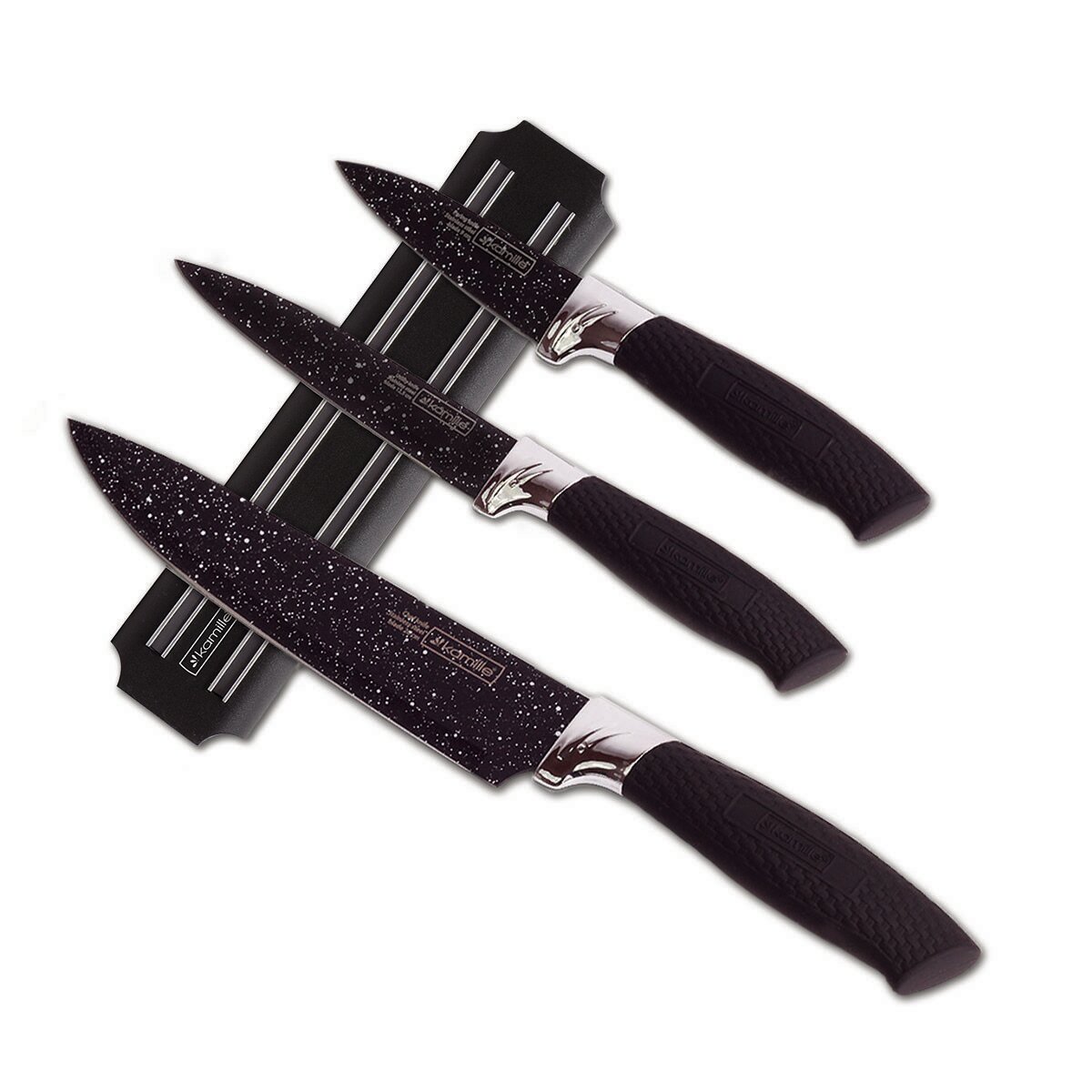 Купить Набор кухонных ножей на магнитной планке Kamille КМ 5148В (4 предмета) (5148B / черный)
