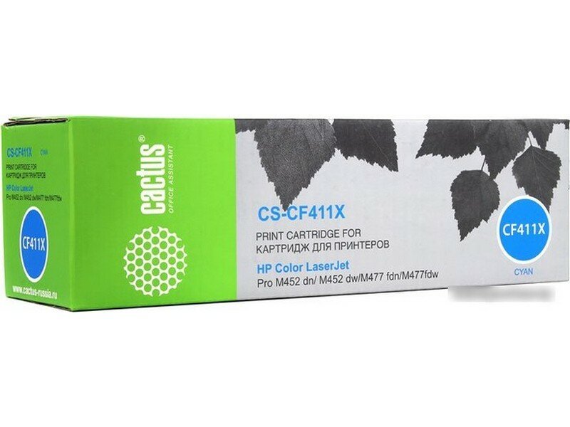 Картридж лазерный CACTUS (CS-CF411X) для HP LaserJet Pro M477fdn/fdw/M452dn/nw, голубой, ресурс 5000 стр.
