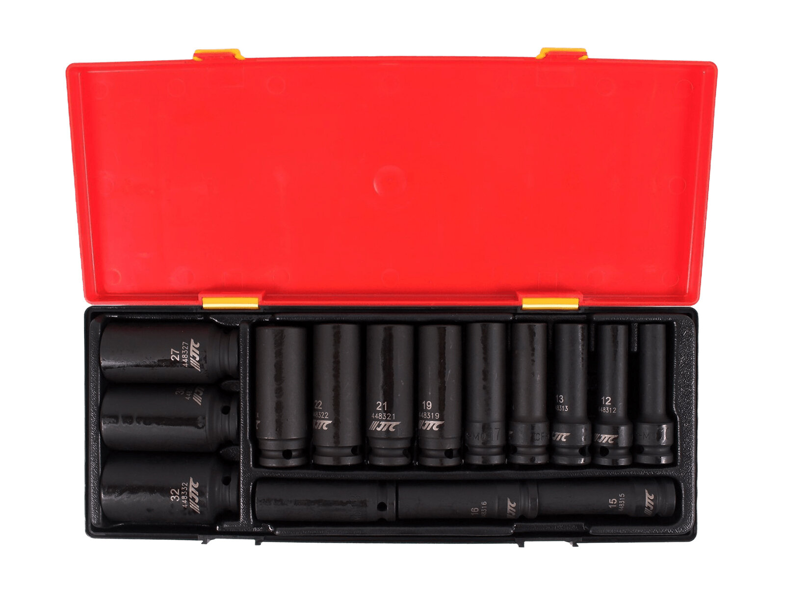 JTC JTCK4153 Набор головок торцевых глубоких ударных 12-гранных 1/2" 10-32мм (в кейсе) 15шт