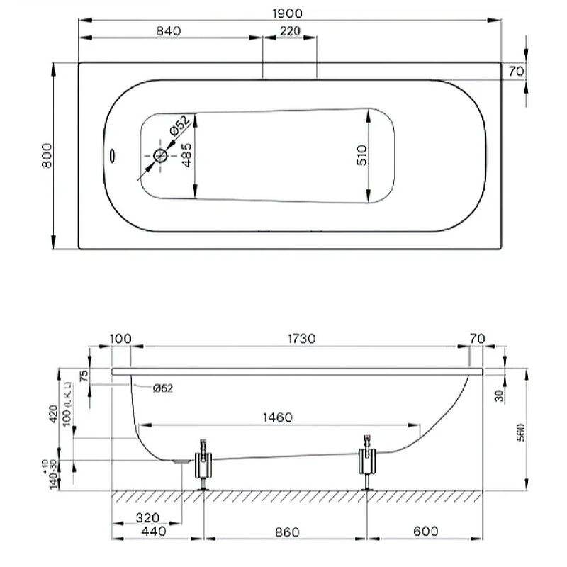 Ванна RAVAK Classic 120x70 акрил