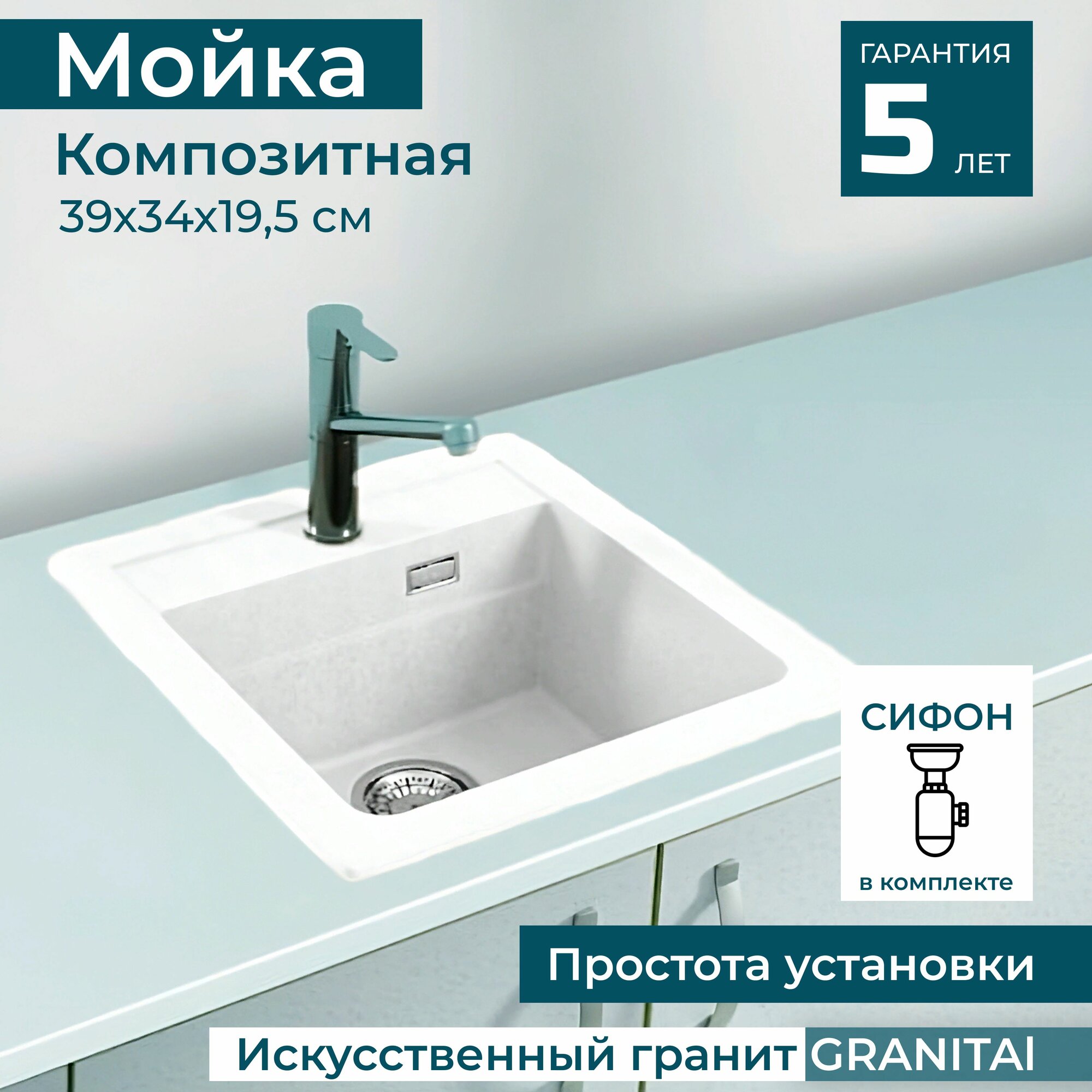 Раковина для кухни врезная каменная Alveus Granital Atrox 20 ARCTIC - G11 470 X 500 / кухонная мойка накладная из искусственного камня, гранит, белый