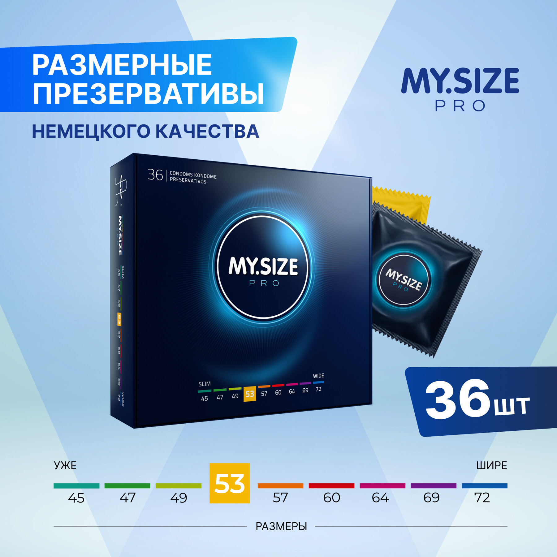 Купить MY.SIZE / MY SIZE размер 53 (36 шт.)/ Майсайз презерватив среднего/ стандартного размера - ширина 53 мм