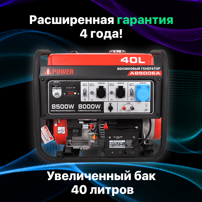 Бензиновый генератор A-iPower A8500EA с электростартером, 8,5 кВт, 230В. Надёжный генератор для дома и дачи