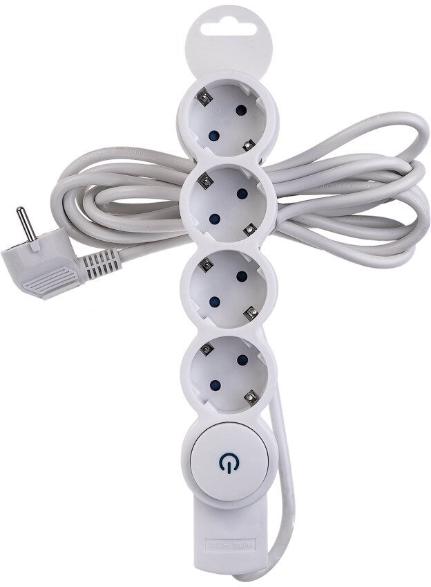 Удлинитель Düwi 4 розетки 5 м ПВС 3х0,75 кв.мм 10 А 2,2 кВт с кнопкой белый (32015 1)