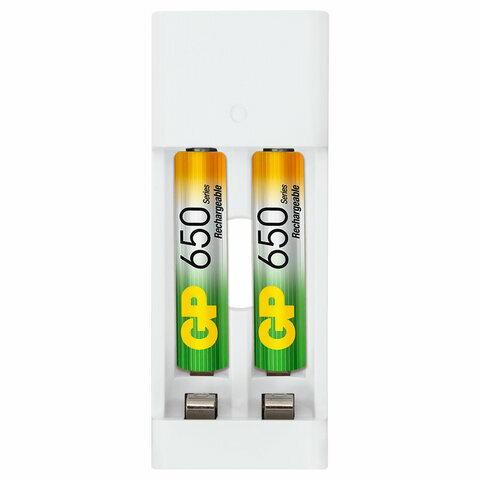 Батарейки аккумуляторные комплект 2 шт., GP, AAA (HR03), Ni-Mh, 650 mAh, блистер, 65AAAHC-2DECRC2, 65АAАНС-UC2 - 1 шт.