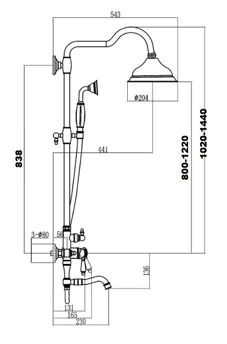 | Комплектация | Смеситель для ванны однорычажный с поворотным изливом - 1 шт. Регулируемая по высоте душевая стойка (80-125 см) - 1 шт. Шланг для душа 150 см - 1 шт. Ручной душ - 1 шт. Кронштейн для ручного душа - 1 шт. Верхний тропический душ с режимом Rain - 1 шт. |