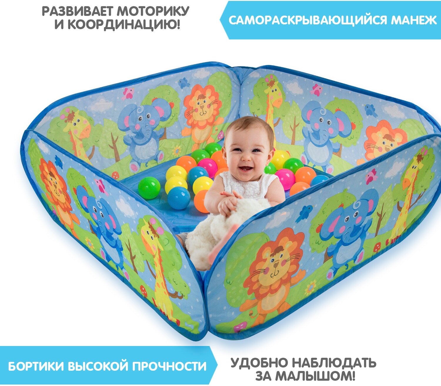 Манеж Bondibon "Веселые игры", самораскрывающийся, 30 шариков (ВВ4481) интересное: