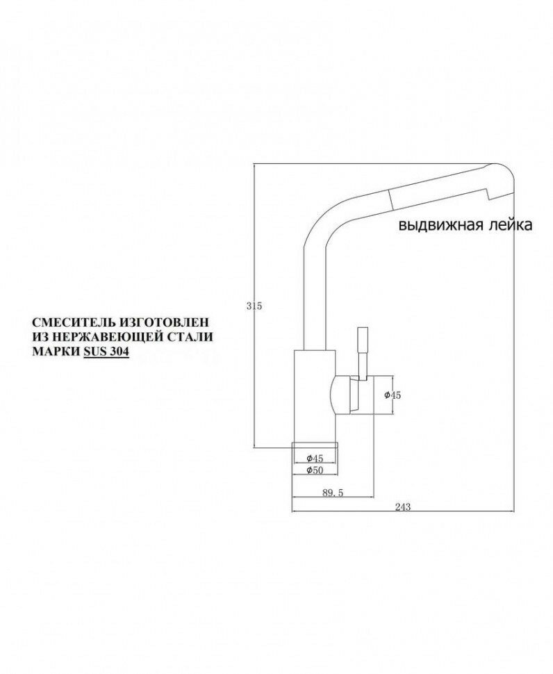 | Высота излива | 315 мм |