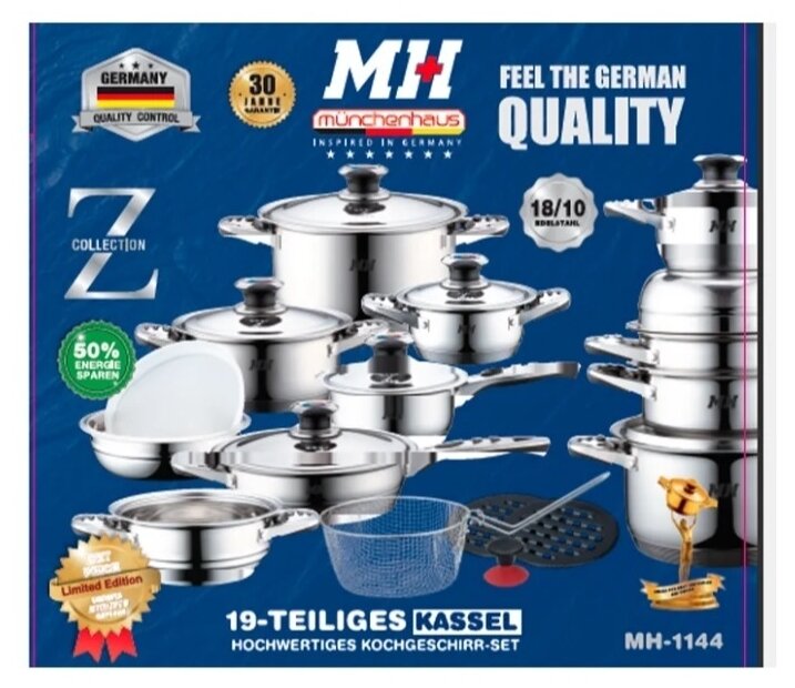 Ниже Вы можете прочитать отзывы на Набор посуды из 19 предметов Munchenhaus MH-1144, ознакомится с подробными характеристиками, посмотреть интересные обзоры и фотографии на Набор посуды из 19 предметов Munchenhaus MH-1144.