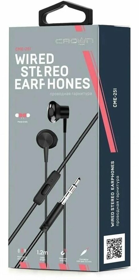 Проводные наушники Crown CME-251 black