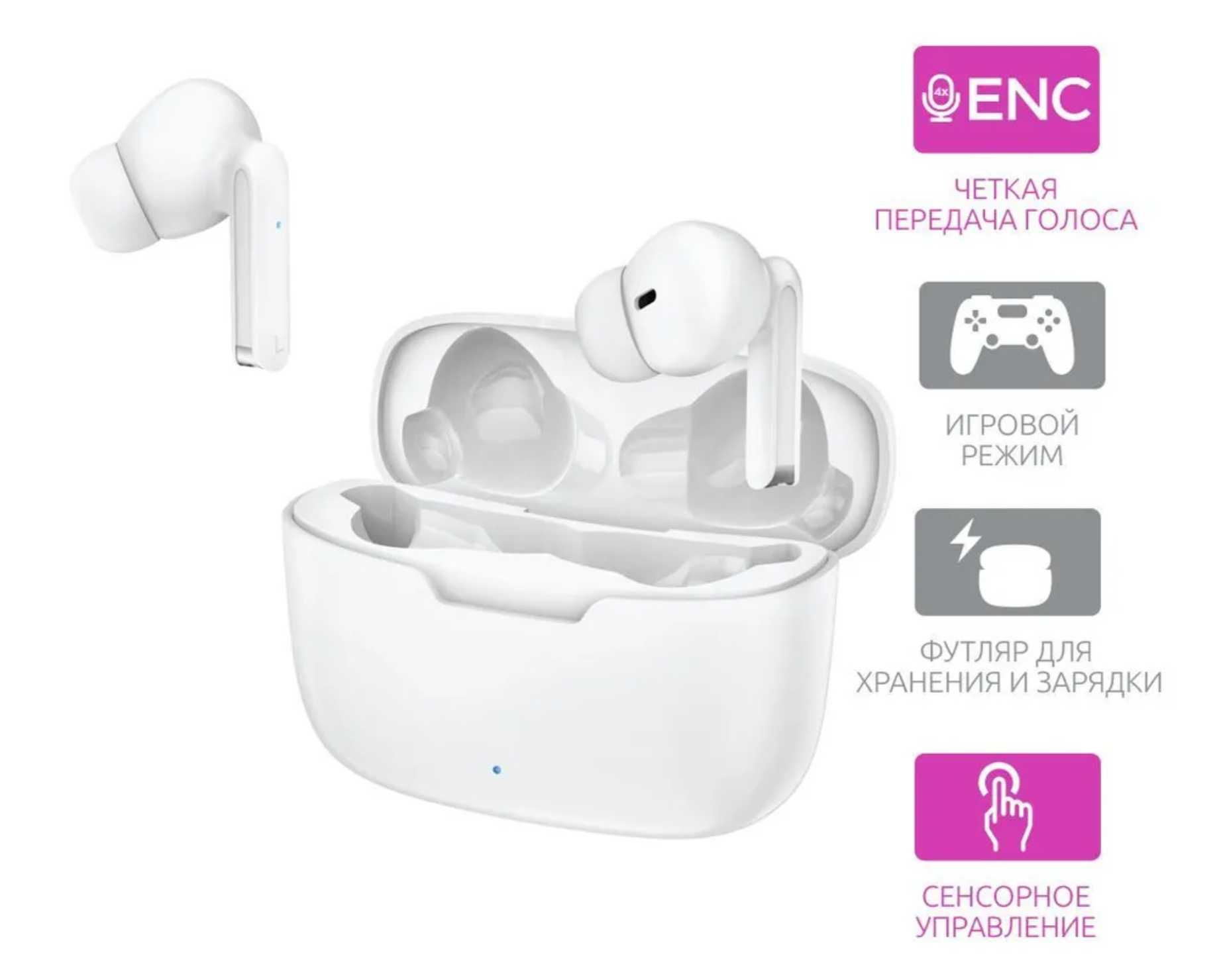 Беспроводные сенсорные наушники TWE-014 для телефона / Bluetooth 5.1 / TWS наушники для Android, IOS, iPhone / белые / OLMIO