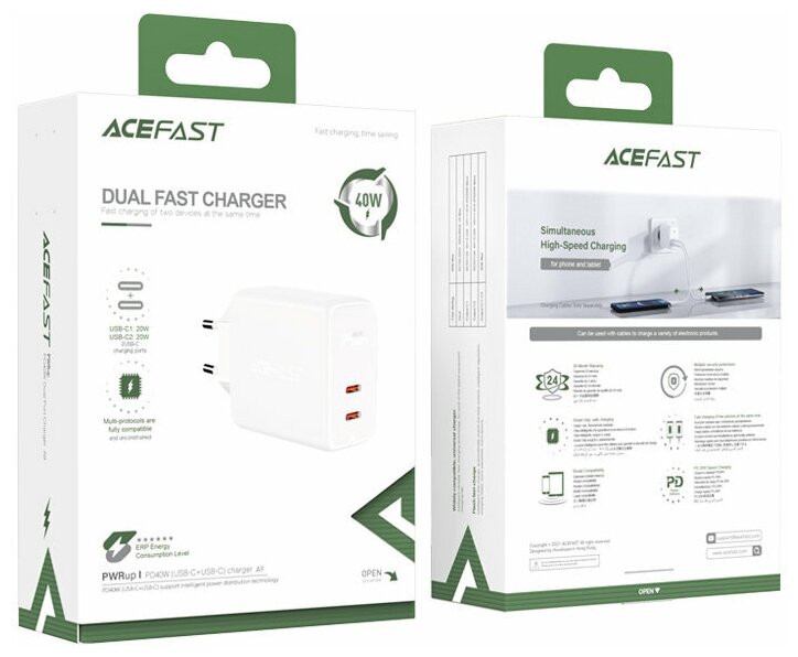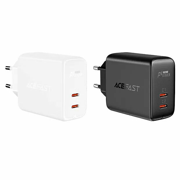 Сетевое зарядное устройство ACEFAST A9 Dual fast Charger, USB-C + USB-C, PD40W, Белый