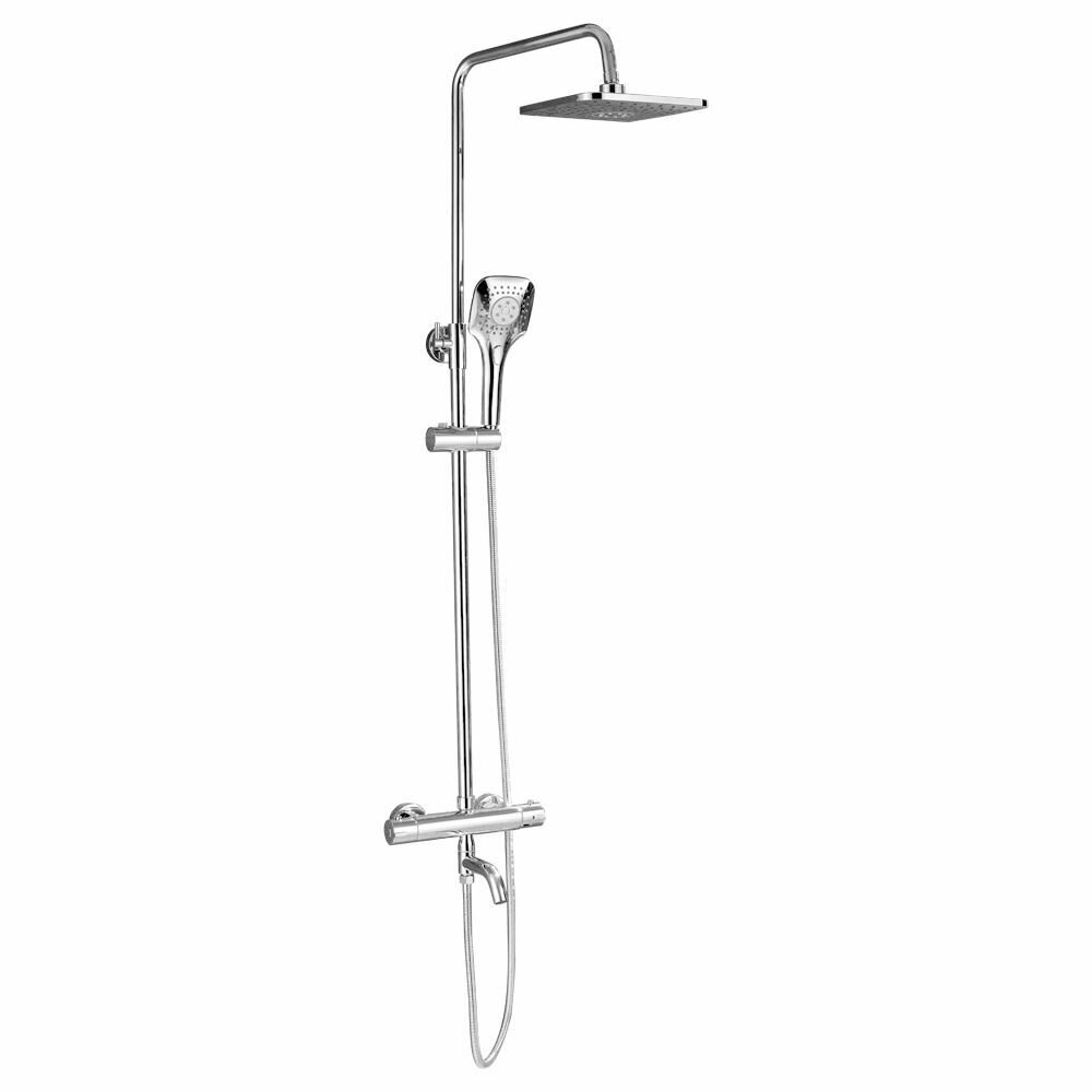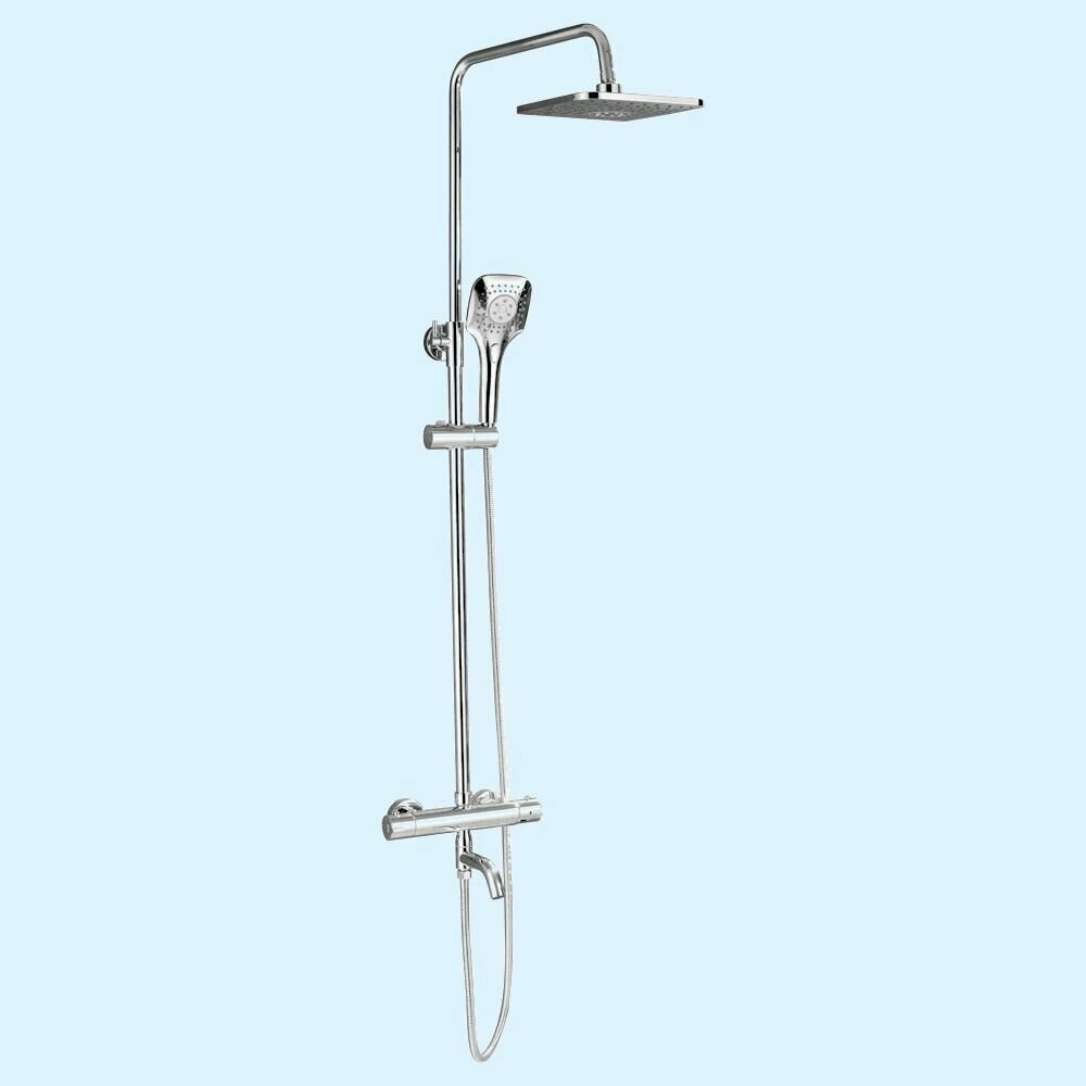 Смеситель + стойка душевая "тропический душ" с термостатом, с двумя квадратными хромированными лейками