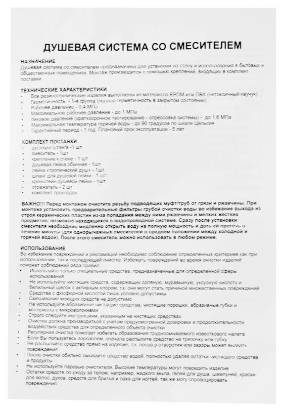 | Шланг для душа в комплекте | есть |