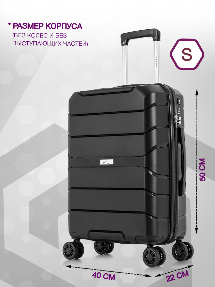 Купить Чемодан на колесах Lcase Singapore, Черный. Маленький S, полипропилен. Дорожный чемодан на колесиках для путешествий и поездок.