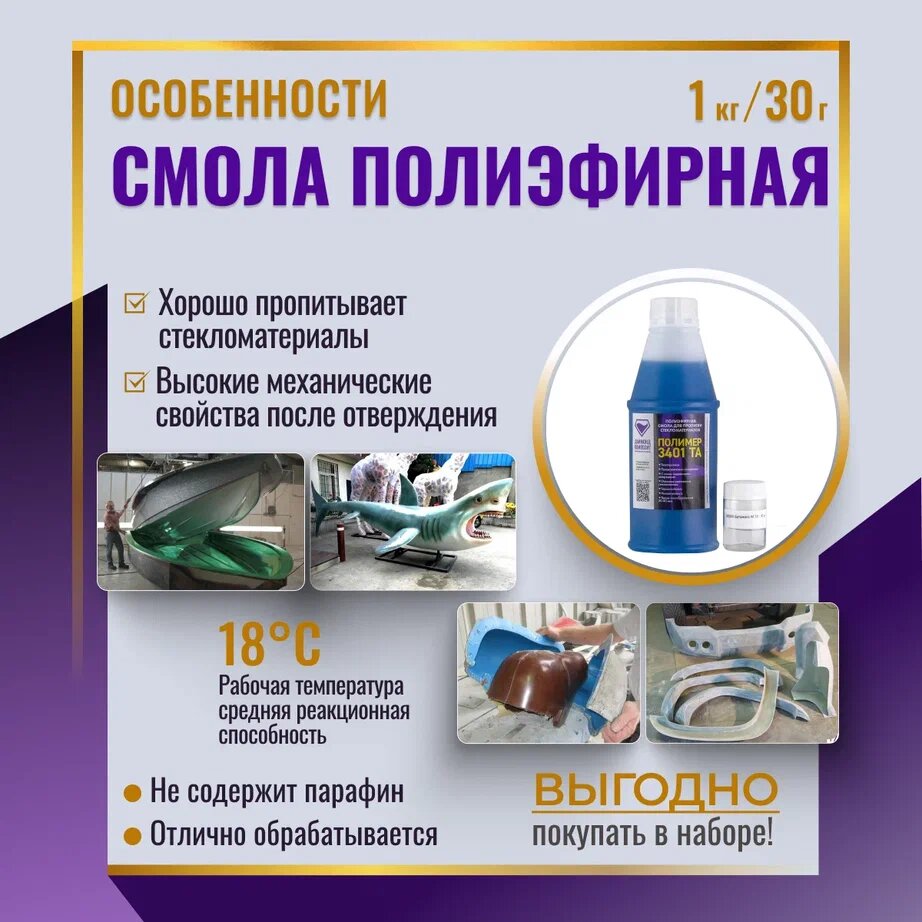 Полиэфирная смола полимер 3401 ТА (1 кг. + отвердитель Бутанокс 30 гр.) интересное: