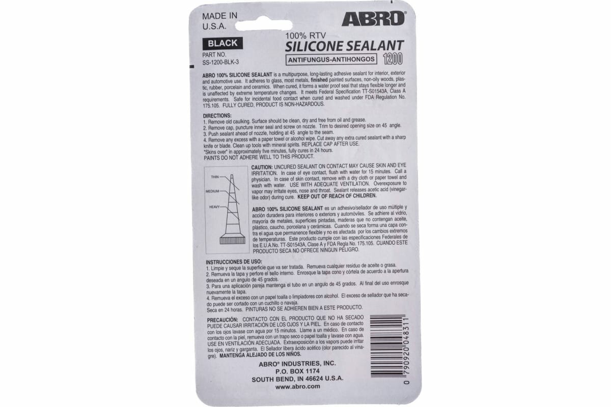 Ниже Вы можете прочитать отзывы на ABRO SS-1200-BLK-3 Герметик силиконовый черный (85 г) США ABRO SS-1200-BLK-3, ознакомится с подробными характеристиками, посмотреть интересные обзоры и фотографии на ABRO SS-1200-BLK-3 Герметик силиконовый черный (85 г) США ABRO SS-1200-BLK-3.