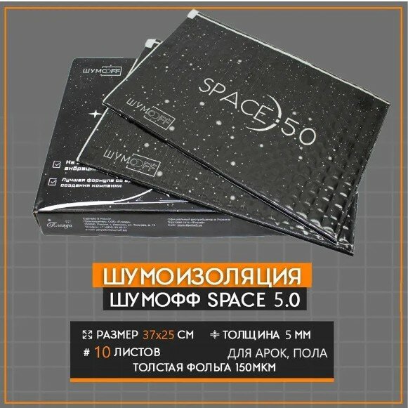 Многослойный вибродемпфер Шумофф Space 5.0 (10 листов 37*25см) Шумоизоляция для пола автомобиля, канализационной трубы интересное:
