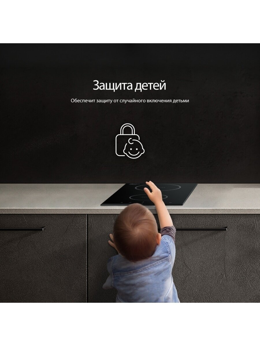 | Безопасность | защитное отключение конфорок / кнопка блокировки панели / индикатор остаточного тепла |
