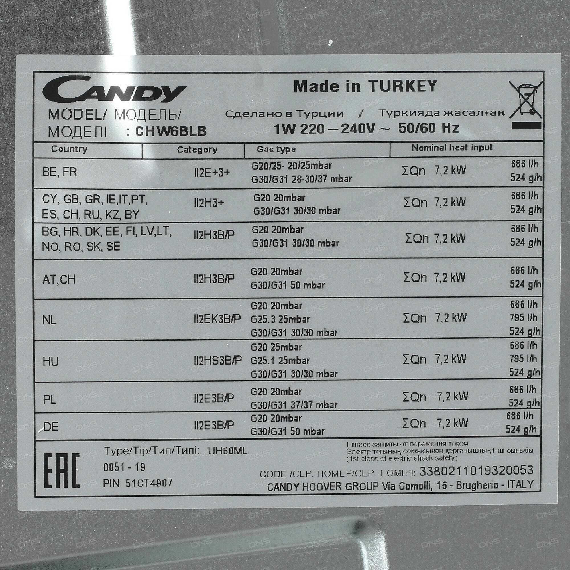 Газовая варочная поверхность CANDY CHW6BLB, черный (33802110)