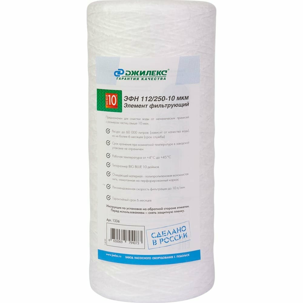 Элемент фильтрующий ЭФН 112/250-10мкм (10 ББ), до 60 000 л., Джилекс 1336