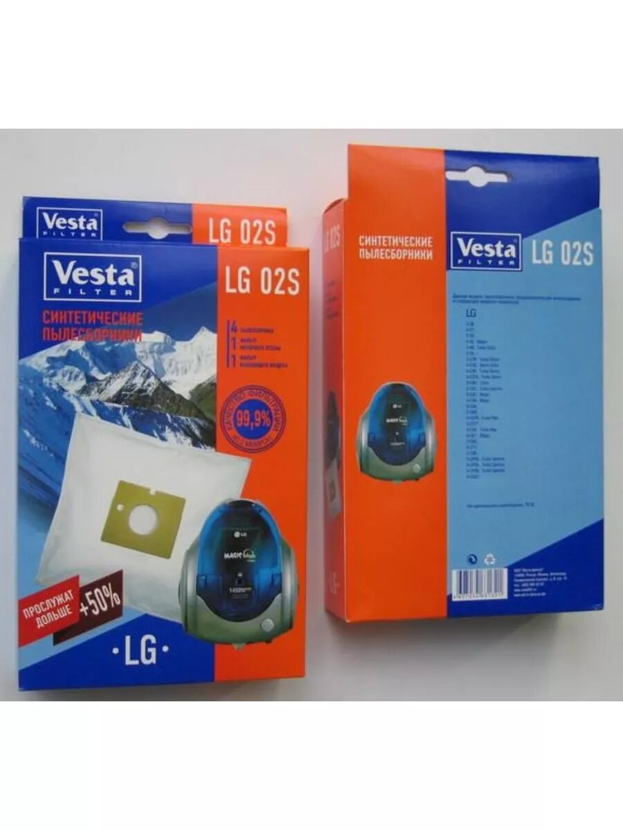 Купить Мешки-пылесборники Vesta filter LG 02 S для пылесосов LG, 4 шт + 2 фильтра