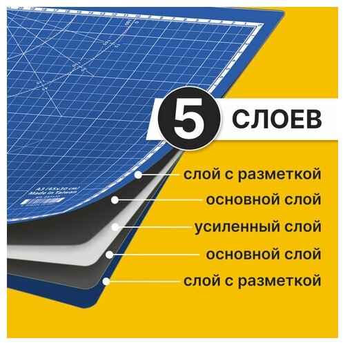 Коврик BRAUBERG (мат) для резки EXTRA 5-слойный, А3 (450х300 мм), двусторонний, толщина 3 мм, синий