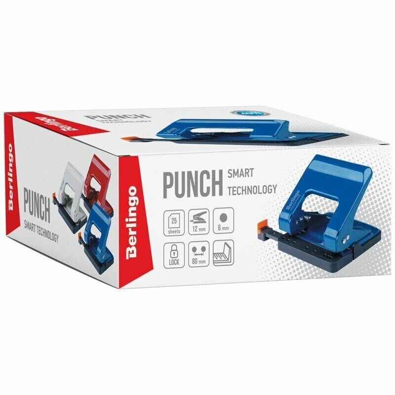 Дырокол Berlingo Smart Technology, до 25 листов, энергосберегающий, с фиксатором, синий (DDm_25203)