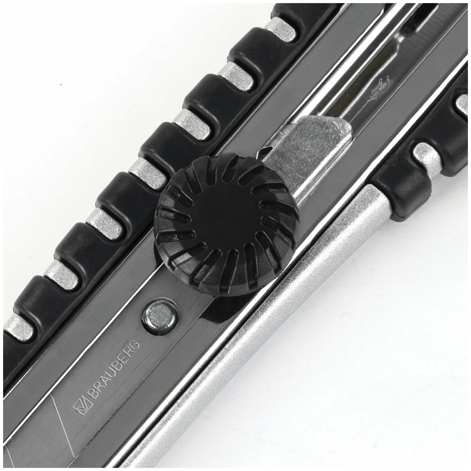 Канцелярский нож Brauberg Metallic 18 мм роликовый фиксатор резиновые вставки металл 237159 .