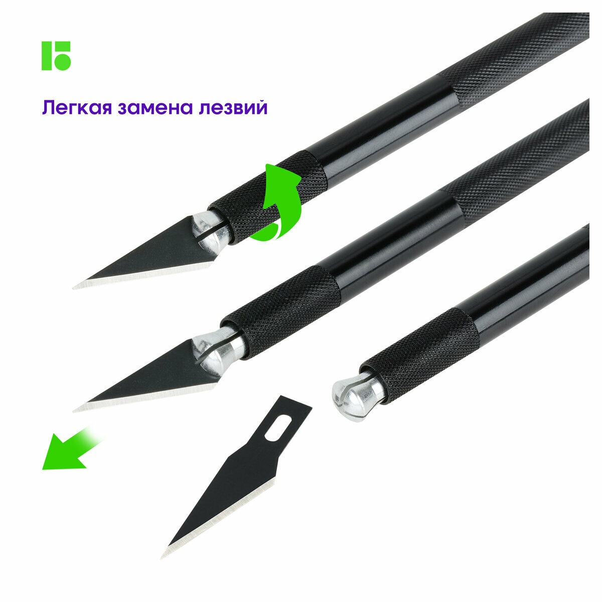 Нож скальпель канцелярский макетный для резки бумаги Berlingo модельный металлический резак для скрапбукинга и моделирования, цанговый, 5 сменных лезвий