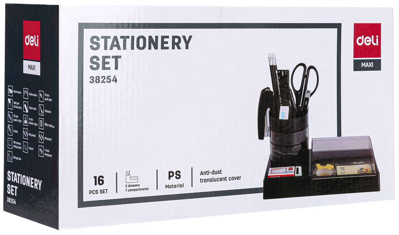 Купить Настольный набор Deli E38254, 16 предметов, пластик, черный