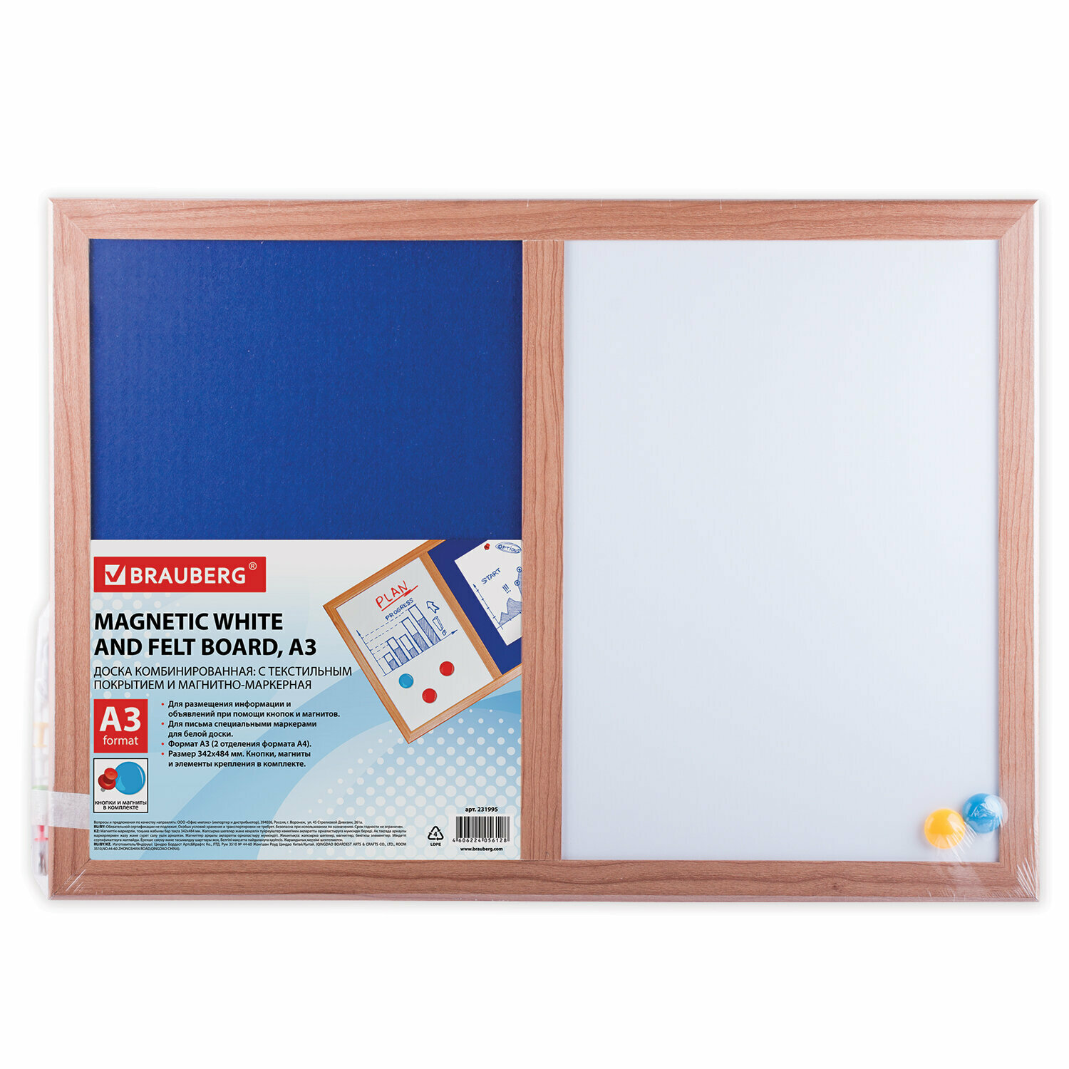 Доска комбинированная: магнитно-маркерная, текстильная для объявлений А3 (342х484 мм), BRAUBERG, 231995