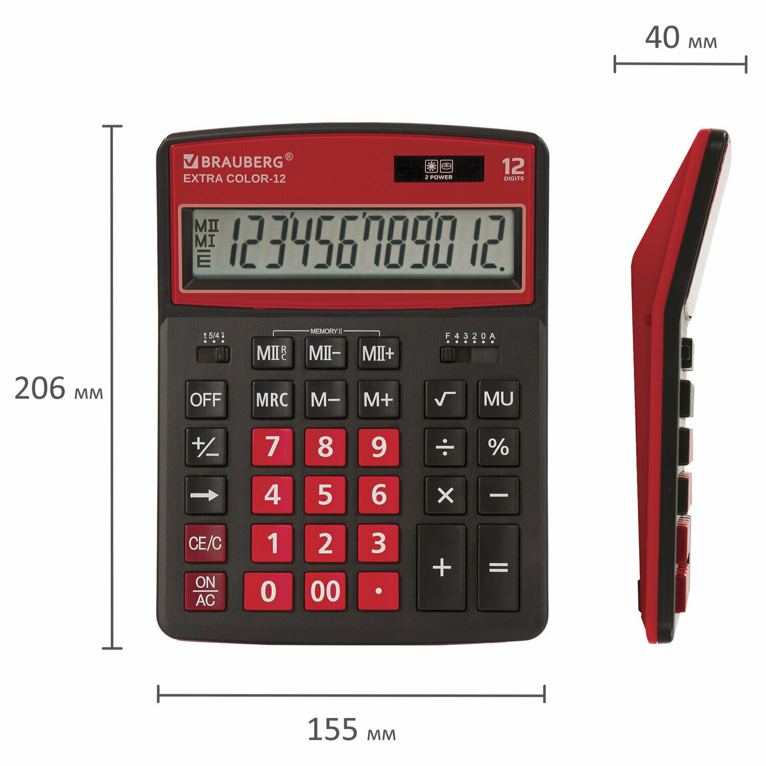 Калькулятор настольный BRAUBERG EXTRA COLOR-12-BKWR (206x155 мм), 12 разрядов, двойное питание, черно-малиновы