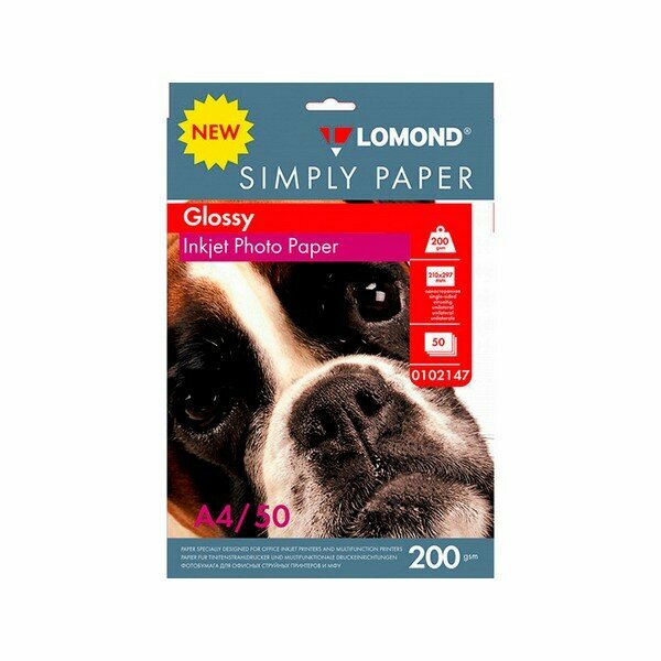 Купить Фотобумага Lomond Simply A4, 200 г/м2 (50 листов) экономичная глянцевая односторонняя (0102147)