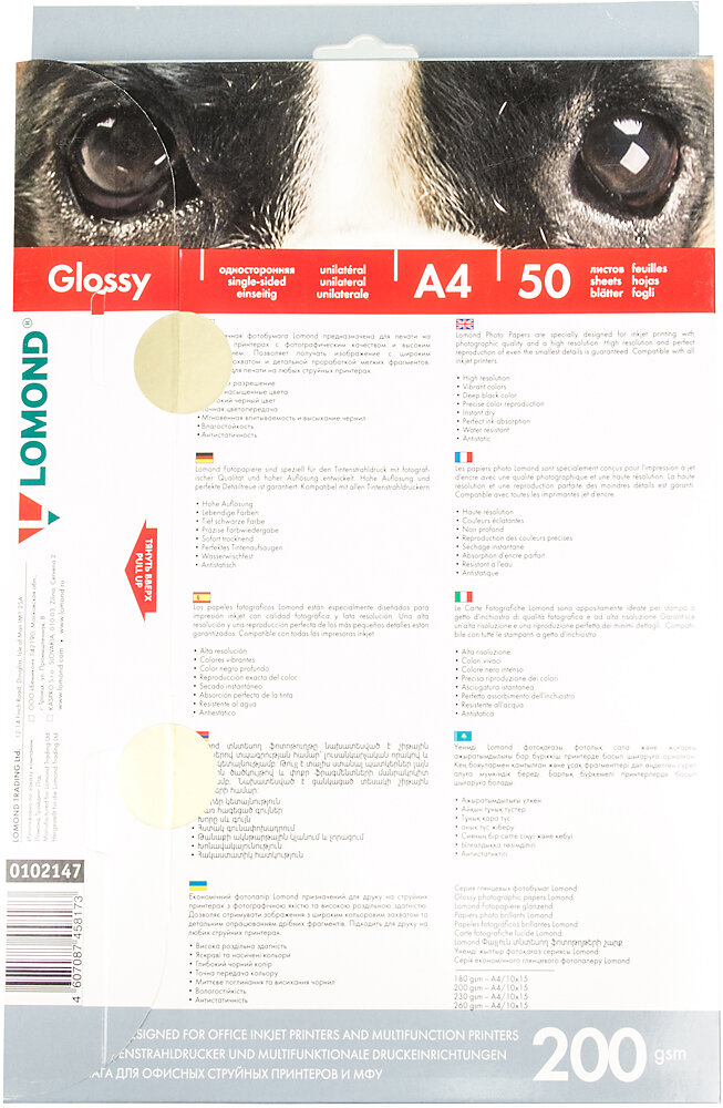 Lomond Фотобумага для струйной печати А4 LOMOND, 200 г/м2, глянцевая односторонняя, 50 листов (0102147)