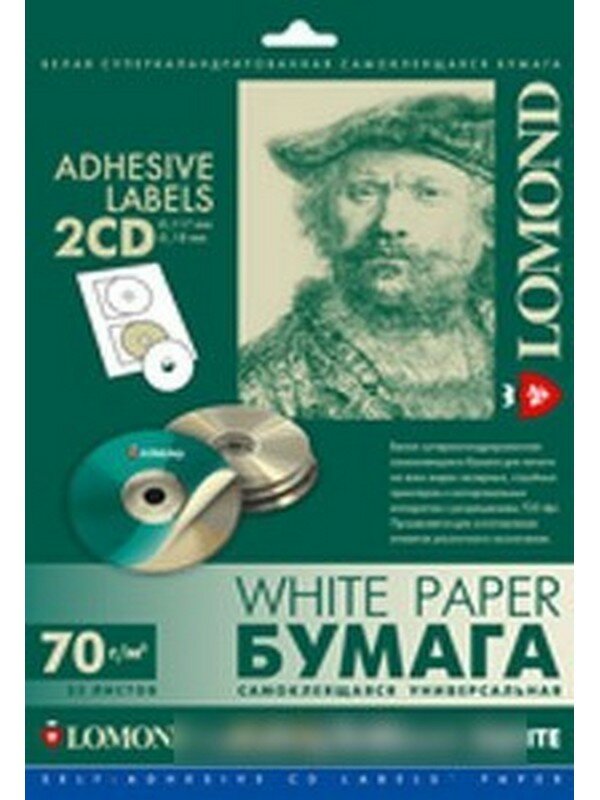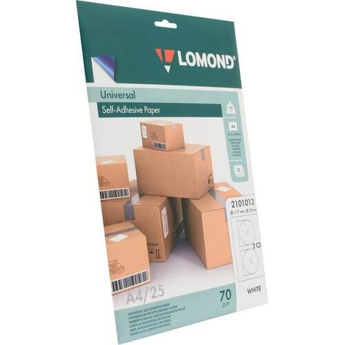 Купить Самоклеящаяся бумага LOMOND универсальная для этикеток, A4, 2 шт для CD/DVD (D117 / D18мм), 70 г/м2, 25 листов