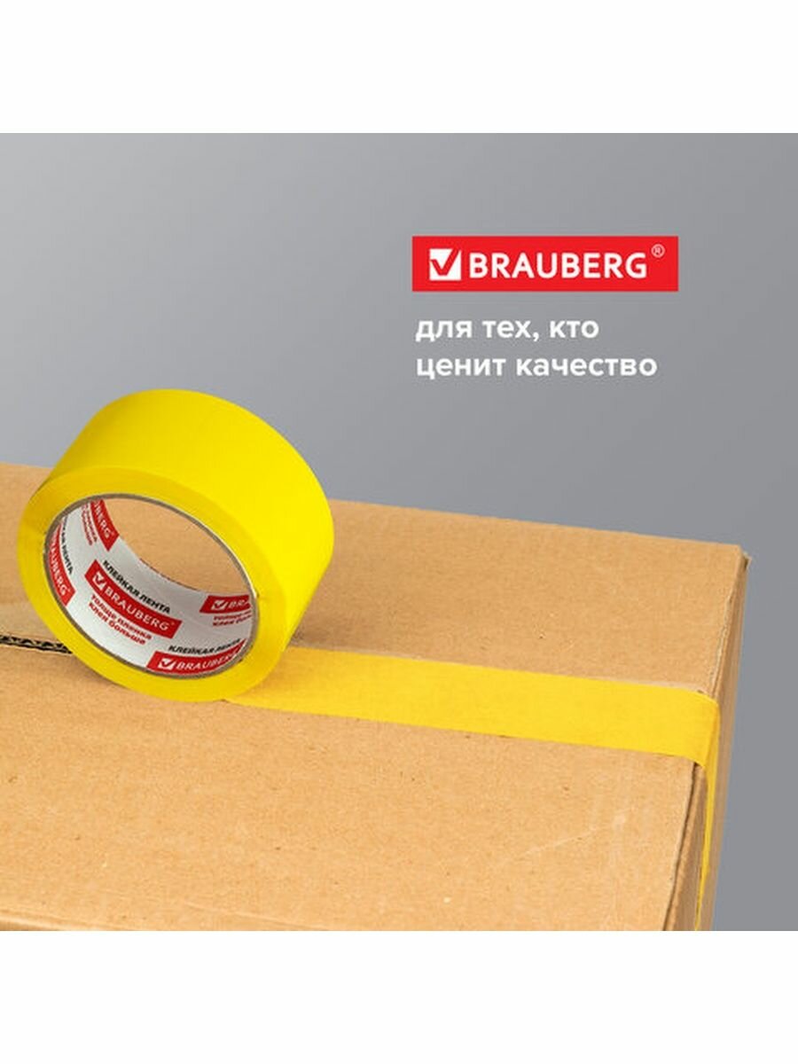 Клейкая лента упаковочная BRAUBERG 48 мм х 66 м, желтая, толщина 45 микрон, BRAUBERG 440141