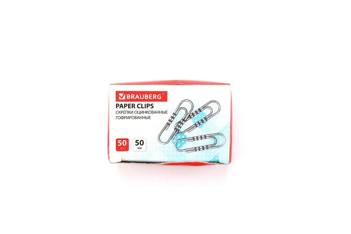 Скрепки большие 50 мм, BRAUBERG, оцинкованные, гофрированные, 50 шт., в картонной коробке, 270446 В комплекте: 20шт.