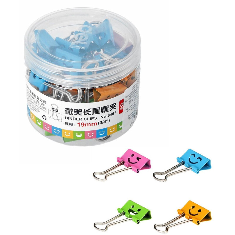 Зажимы Deli 8487 smile 19мм ассорти (упаковка: 40 штук) пластиковая туба
